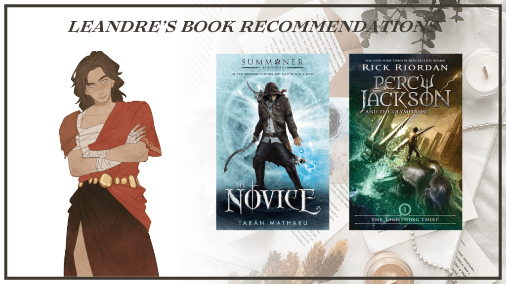 Leandre would prefer middle grade or YA books. His favorite being The Novice by Taran Matharu or Percy Jackson by Rick Riordan. He doesn’t read often though, since he rarely finds the time to.