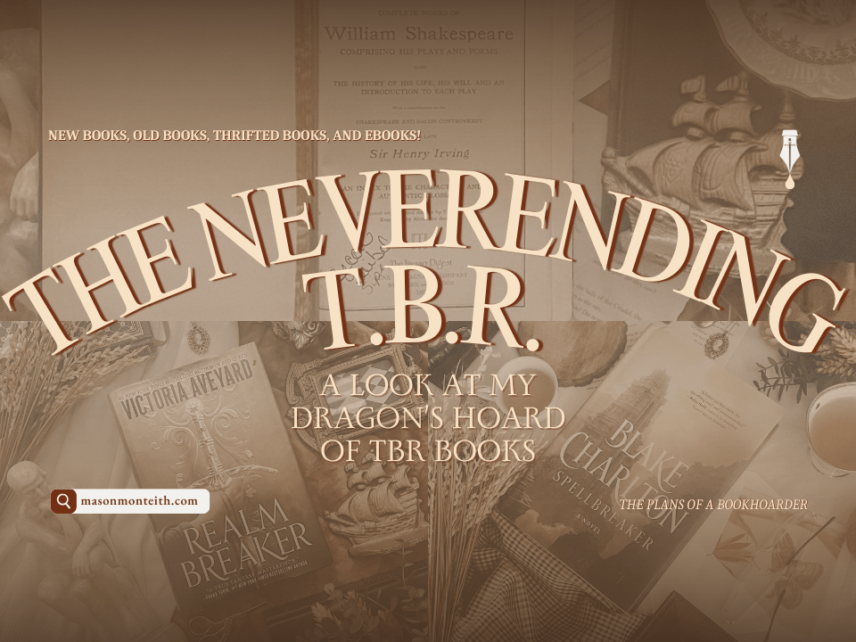 So there’s my TBR! I’ve really slowed down with reading in recent years, so it will be a little bit before I can post reviews of any of these books-but be sure to keep an eye out for that over on my Instagram page! @Bookishmasonmonteith